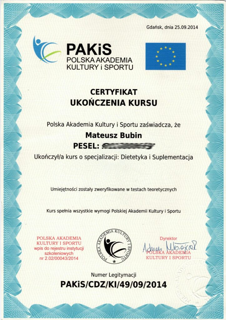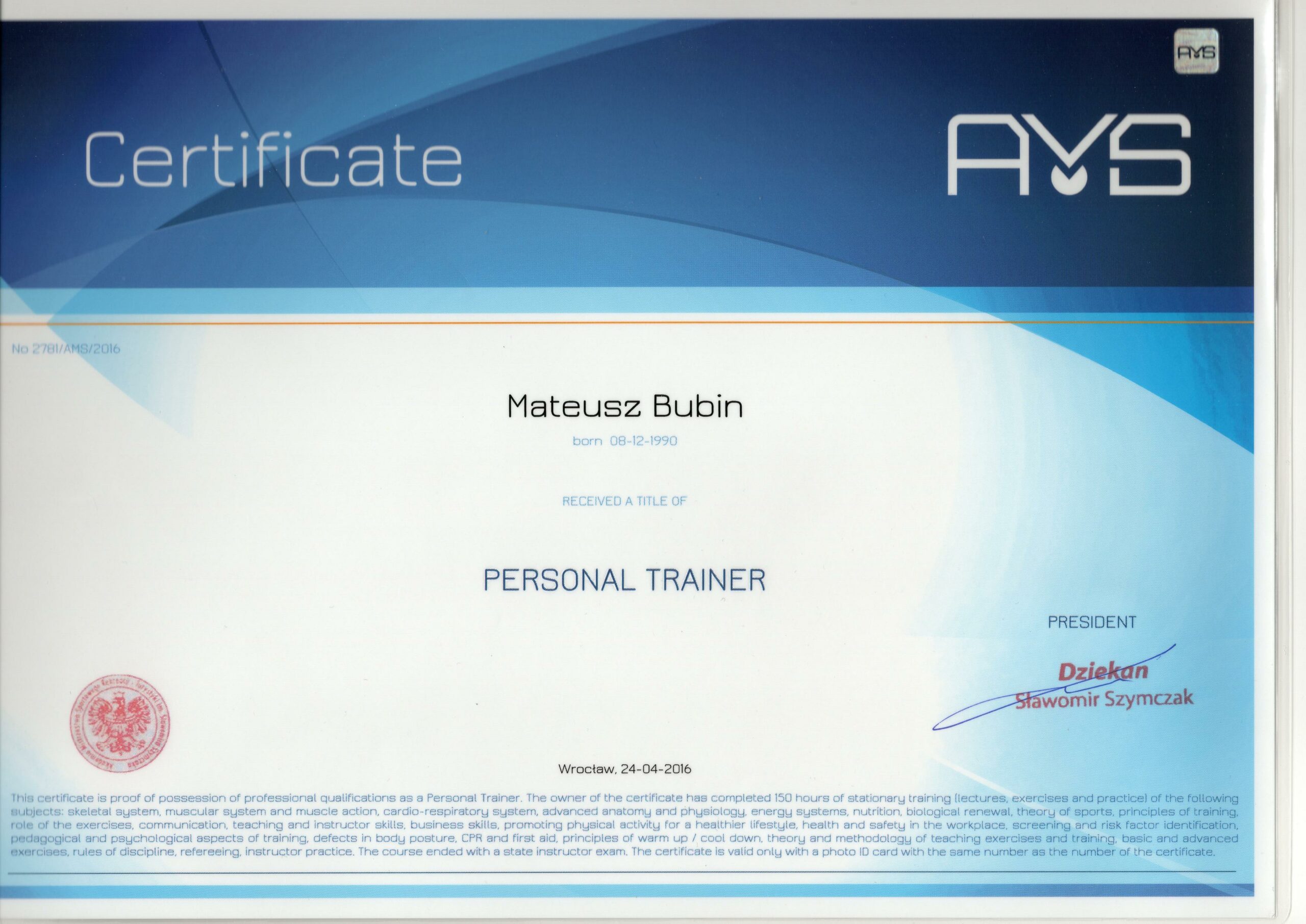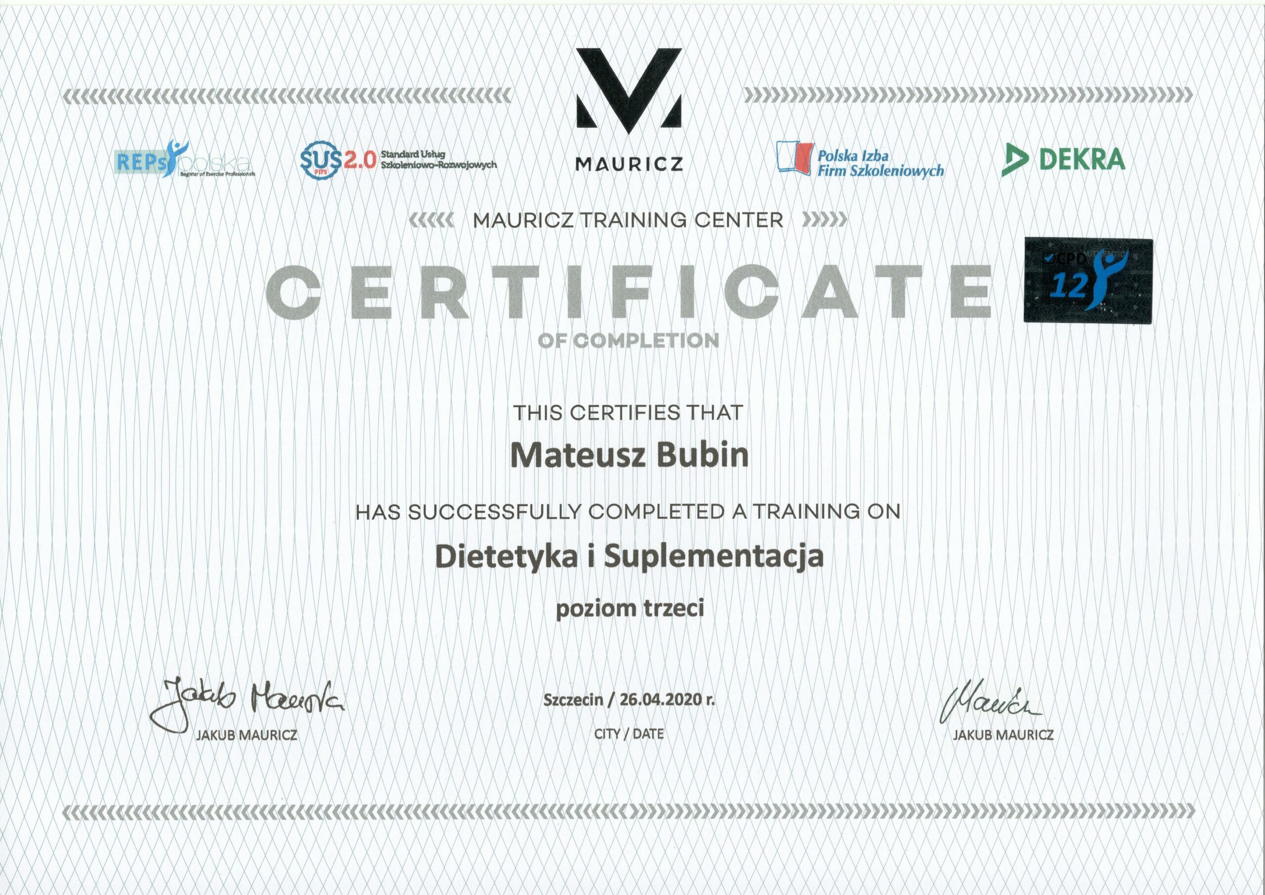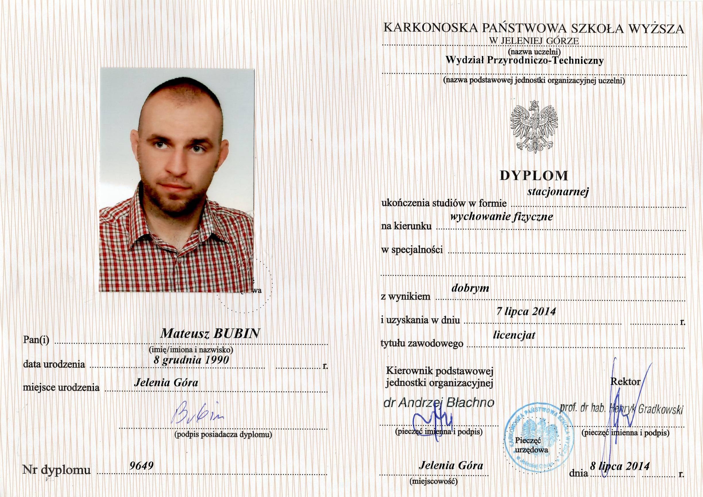 Jestem absolwentem Wychowani Fizycznego w Karkonoskiej Państwowej Szkoły Wyższej, Instruktorem Ju- Jitsu, Trenerem personalnym oraz Dietetykiem. Swoją wiedzę oraz kwalifikacje na bieżąco poszerzam biorąc udział w szkoleniach oraz konferencjach o tematyce treningowej i żywieniowej. Reprezentuje poglądy medycyny funkcjonalnej oraz holistycznej.